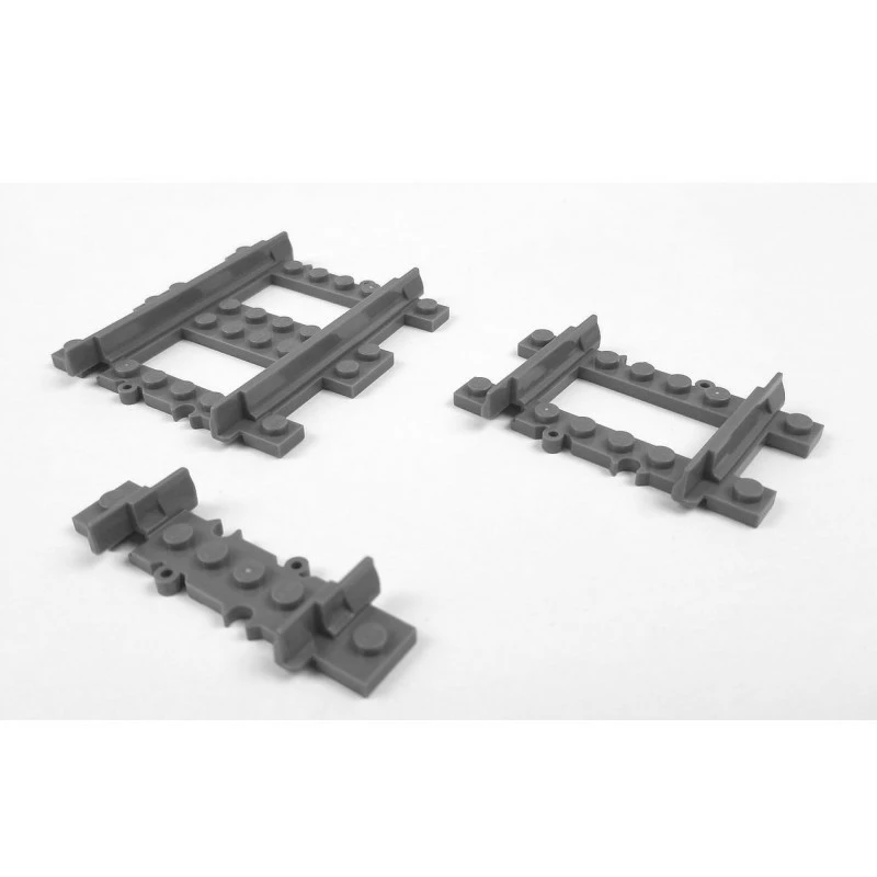 Spoorstukken zijn dark bluish-gray in dezelfde kleur als LEGO.