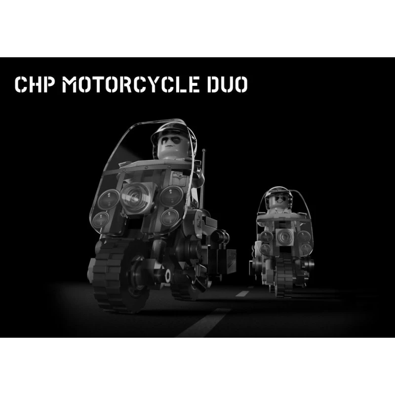 This special release features a pair of CHP minifigs and their rides. The motorcycles themselves feature all custom printed details and a custom created and printed windscreen.