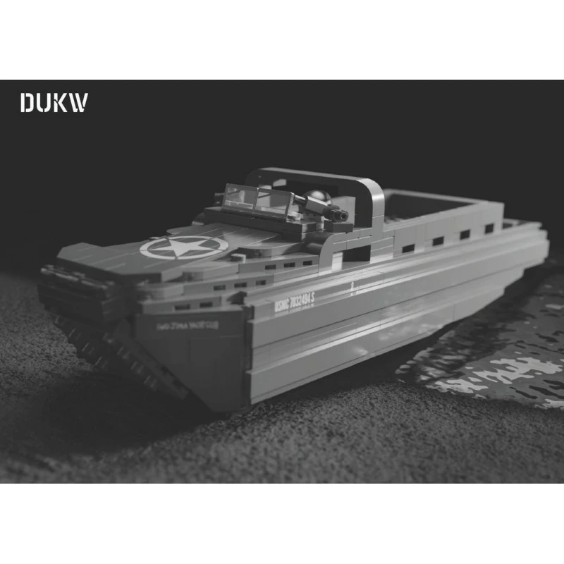 Commonly seen today as transportation for sightseers and tourists in many waterways across the world, DUKWs, or “Ducks,” were once as important to the Allied war machine as the ubiquitous Jeep or “Deuce-and-a-half” truck. Developed and built by a subsidiary of General Motors in April of 1942, the project was cloaked in secrecy. The DUKW was only begrudgingly adopted by United States military leadership, who thought there would be no use for such a craft. The DUKW acronym was a code used by GM: D for year of production, U for utility truck amphibious, K for front-wheel drive, and W for dual rear-driving axles.