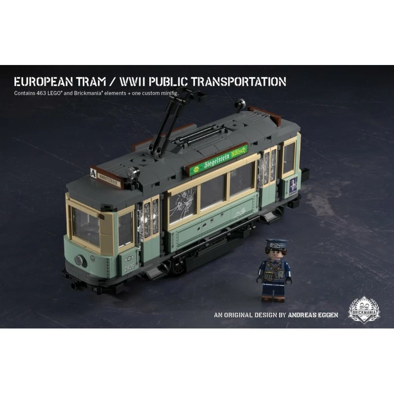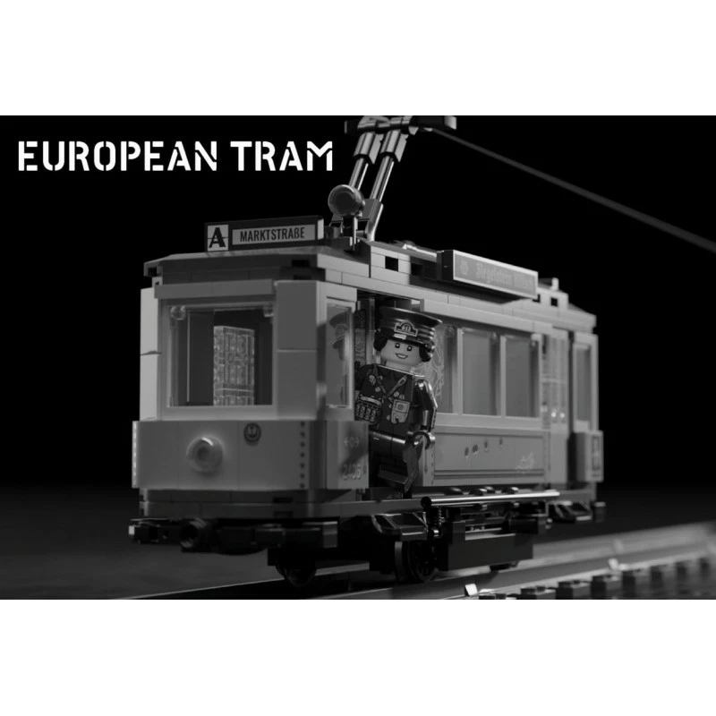 This premium set features 4x LEGO train wheels with friction band and technics axle parts, as well as custom printed elements and a unique custom minifig. Also included are parts to link your tram to additional builds as well as space to add power functions.