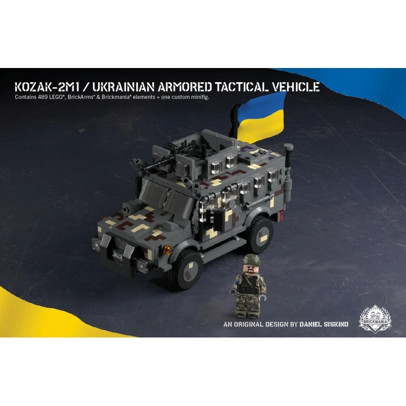 Het Oekraïense Benefit-project van Brickmania gaat verder met de toevoeging van de Oekraïense Kozak-2M1. Deze nieuwste kit bevat 47 op maat gemaakte elementen, evenals acht deuren en luiken die open kunnen, en een volledig roterende pantserkoepel. De kit biedt plaats aan zes soldaten in het voertuig met een andere in een torentje en bevat 1x Oekraïense Rifleman-minifiguren.