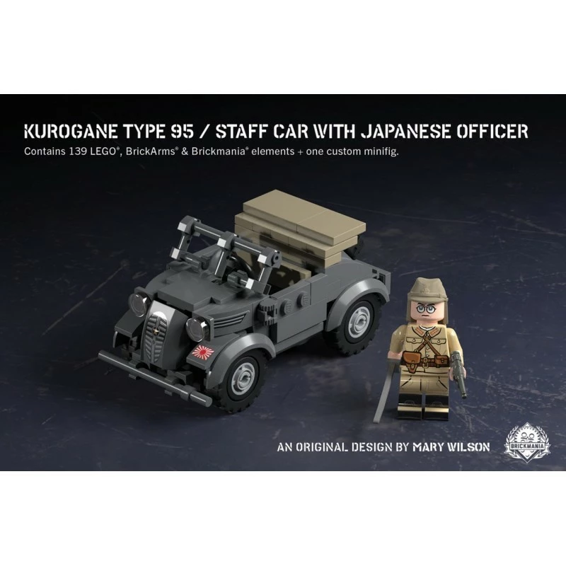 This build features some major upgrades! All details are custom printed, play features include opening doors and an extra tire. Plus, a new Japanese officer minifig with Katana and BrickArms Nambu pistol – featuring a new custom-created field cap with neck flaps!