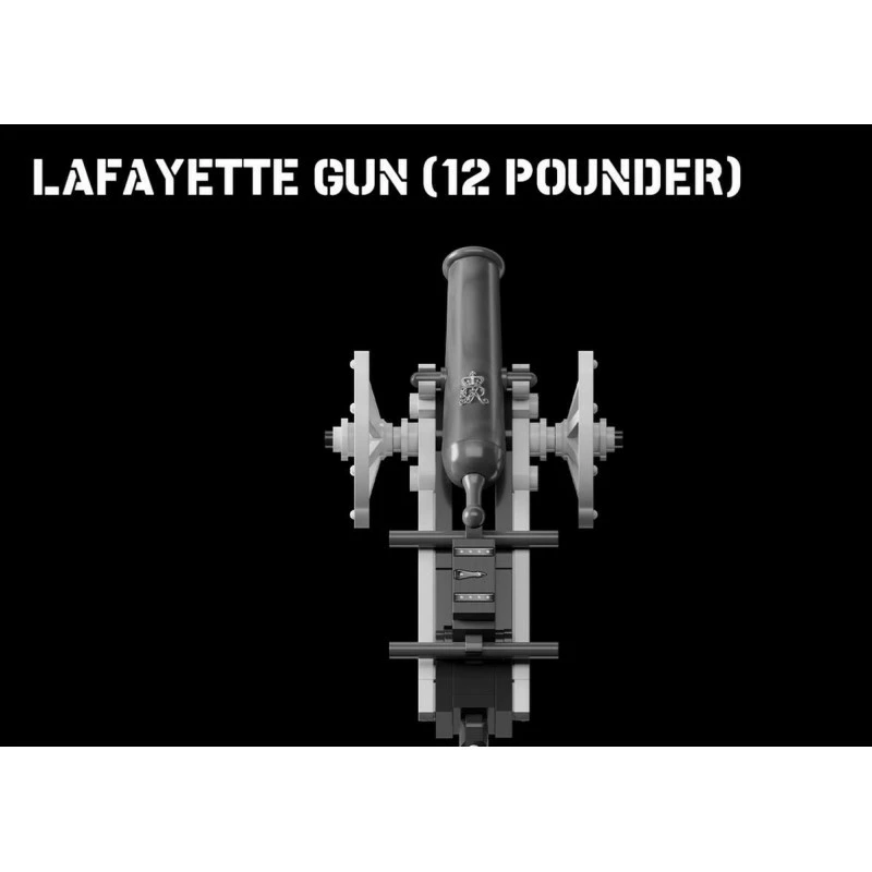 Adorned with a beautifully printed royal seal of King George III (it was captured after all) the Lafayette Gun kit is a functional LEGO® cannon element capable of launching projectiles. The build itself is simple, sturdy and features a printed ammo crate as well as the gun’s royal seal, making it a perfect blend of functionality and detail.