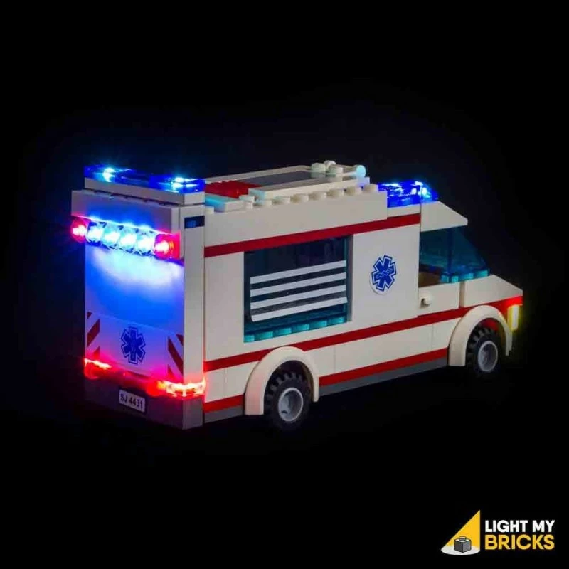 Deze City Ambulance-set heeft verlichtingsfuncties zoals verlichte koplampen en knipperlichten voor en achter voor een realistisch noodeffect. Deze verlichte LEGO-set bevat ook een klein batterijpakket dat gemakkelijk in de ambulance zelf kan worden verborgen, wat betekent dat er geen visuele impact is op uw model!