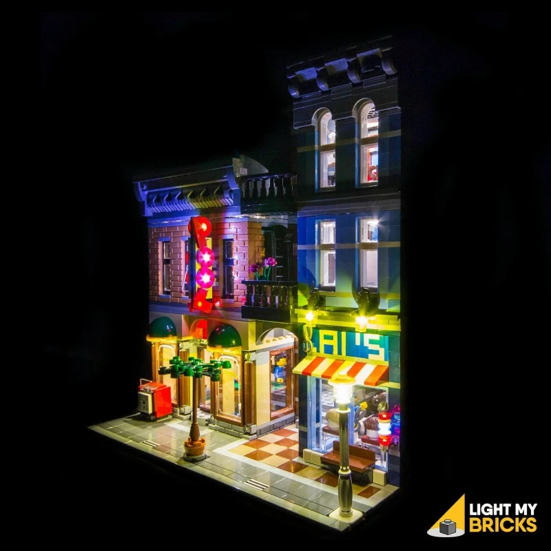 Hier bij Light My Bricks is het kantoor van de detective een van onze persoonlijke favorieten voor de line-up van Modular Building. Onze speciaal ontworpen LEGO-lichtset bevat 29 individuele lichten die deze prachtige set tot een echt hoogtepunt in uw LEGO-collectie zullen maken.