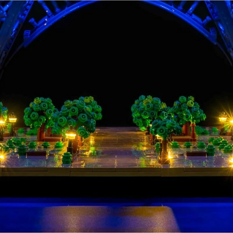 Geen enkele steen is onverlicht gelaten in deze ongelooflijke lichtset, van de toren met vlaggetjes tot de beroemde met bomen omzoomde esplanade beneden, alles baadt in adembenemend licht. Dit maakt dit een echt uitzonderlijk pronkstuk in het huis van elke LEGO bouwer.