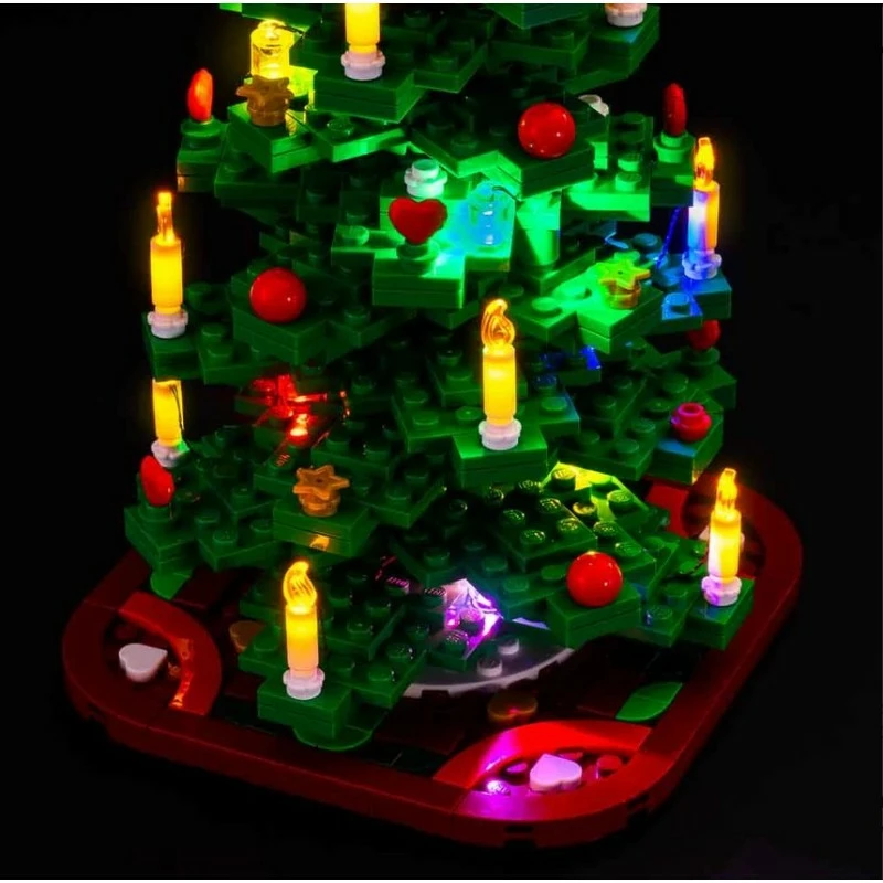 Een kerstboom is pas af met klatergoud, versieringen en – LICHTEN! Maak je LEGO 2-in-1 kerstboom 40573 compleet met Light My Bricks!