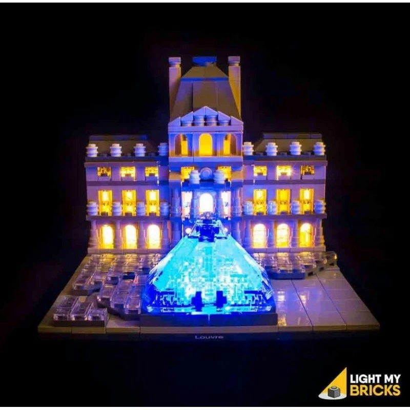 Deze set bevat LED-lampen voor het hoofdgebouw en de iconische glazen piramide van het Louvre.