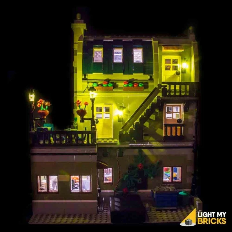 Deze set bevat 14 individuele LED-verlichting. Er is veel aandacht besteed aan het benadrukken van alle prachtige details die deze set te bieden heeft, inclusief buitenverlichting, straatverlichting, keuken en interne verlichting!