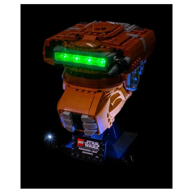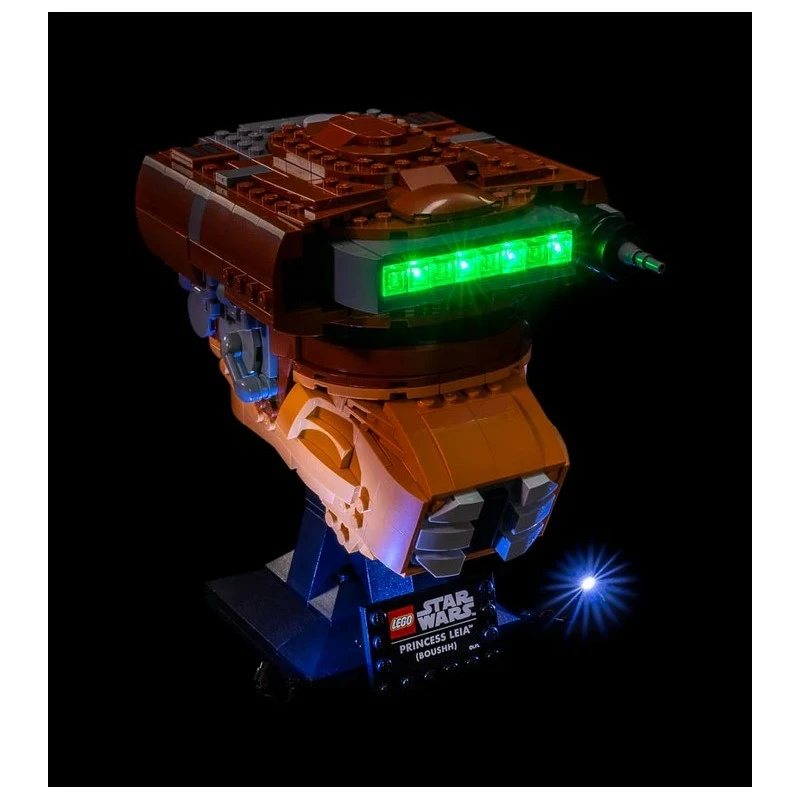 Onze LEGO Star Wars Princess Leia (Boushh) helm 75351 verlichtingsset biedt een indrukwekkende methode om deze iconische Star Wars-helm te benadrukken. Met 6 individuele LED’s, waaronder verschillende groene lichtjes in combinatie met een Blink Effects Board om de scanbeweging van de beruchte Bounty Hunter’s vision scanner te creëren, waardoor deze krachtige replica tot leven komt!