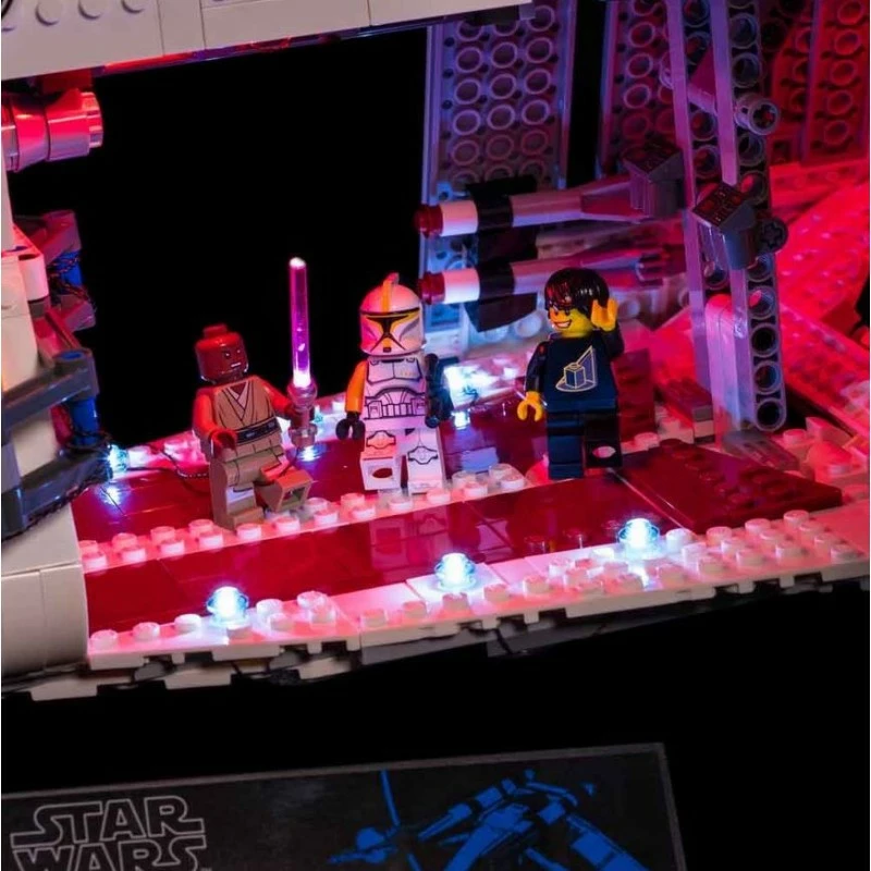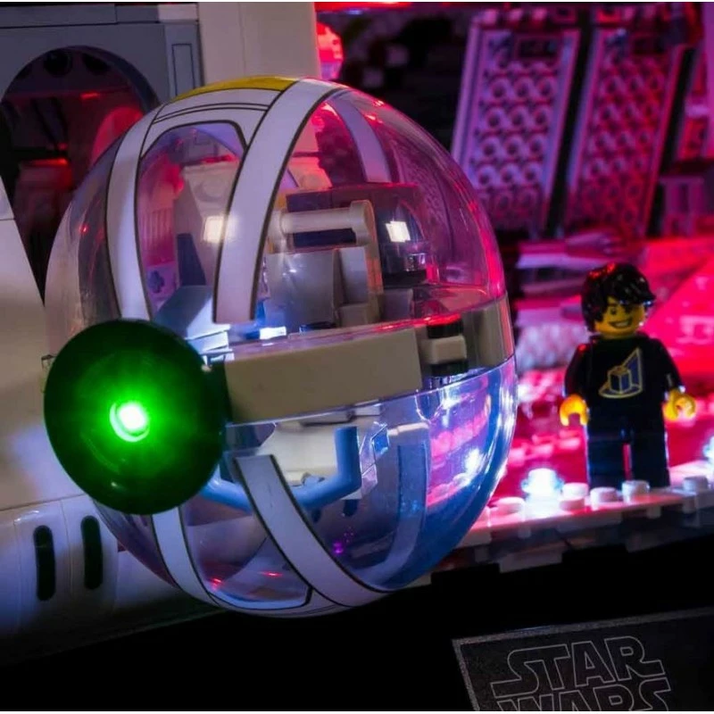 Onze LEGO Star Wars UCS Republic Gunship-verlichtingsset is een welkome aanblik op elk slagveld of display en bevat in totaal 26 individuele LED’s! Pas vooraan op voor twee groene bitlichtlasers die aanvalsvuur leveren dankzij ons pistooleffectbord, waarbij dekkingsvuur ook van zowel bakboord als stuurboord komt via de bolvormige torentjes!