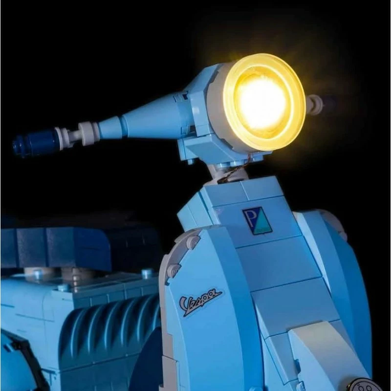 Een echt Italiaans icoon, de Vespa is een tijdloos statement over stijl, eenvoud en verfijning! De Light My Bricks-lichtset volgt dit voorbeeld en heeft een gestroomlijnd aantal componenten, inclusief een op maat ontworpen koplamp met 14 individuele LED’s – die zeker elke menigte zal verblinden.