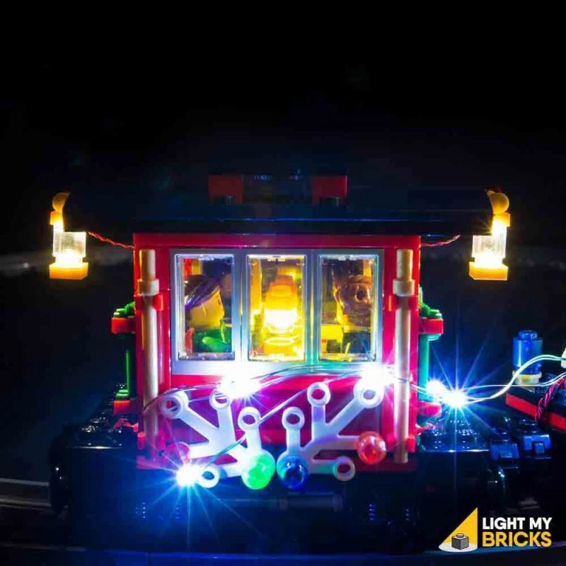 Voeg extra kerstsfeer toe aan uw LEGO® Winter Holiday Train met deze Light My Bricks LEGO® Verlichtingsset en help de locomotief de nacht door terwijl hij cadeautjes, decoraties en een vleugje magie aan de stedelingen brengt!