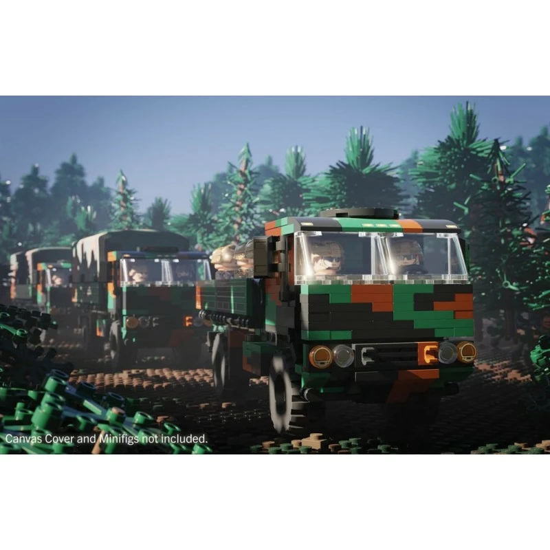 This awesome army builder support model features a brick-built woodland camo, printed details, opening doors, and an overall sturdy/playable design.