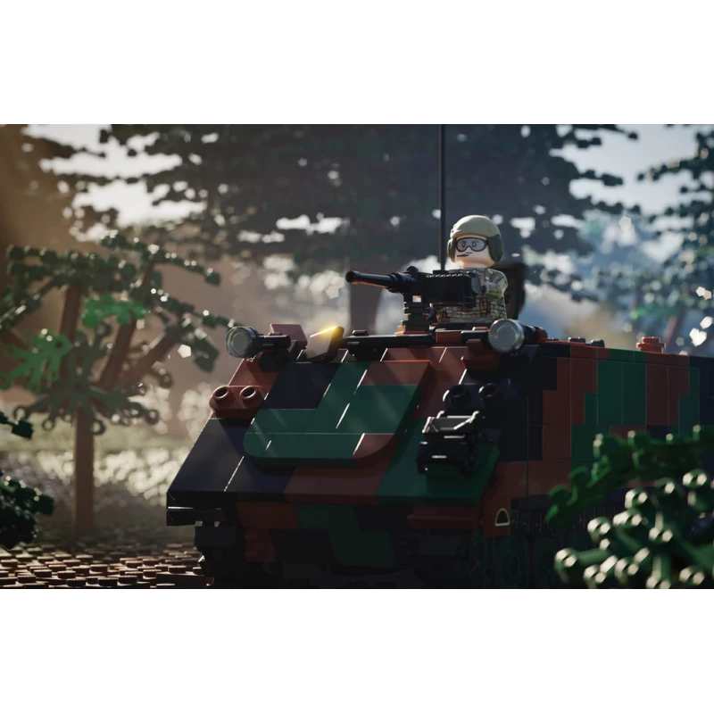 This highly playable build features custom printed details, and 1x custom minifig. Play features include a mounted BrickArms® M2HB, functional top and rear hatches, spacious interior, and smooth rolling V3 Track Links™.