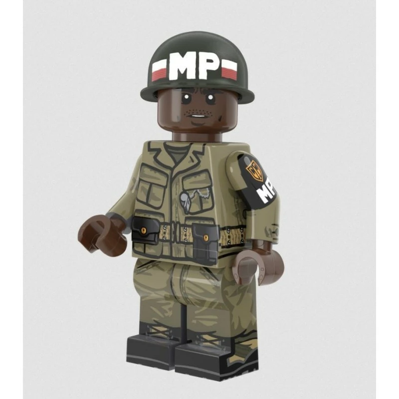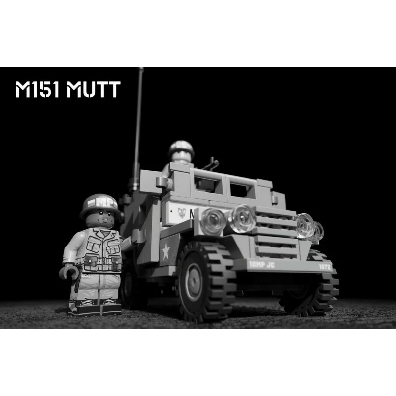 This unique build comes loaded with MOC potential! From custom printed candy bars to a pair of custom minifigs, this kit brings a fresh look for Vietnam MOC builders. Additional printed elements include side stars, bumper details, and a “Military Police” tile with shields on either side. Play features include interior space and a mounted BrickArms M60 MG.