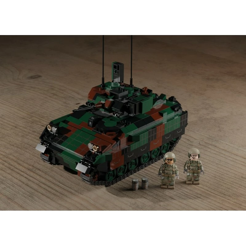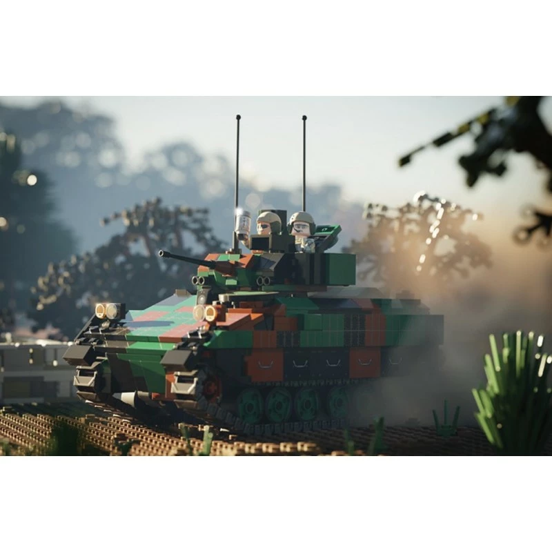 This epic update features printed details and a crew of 2x custom minifigs. Play features include and elevating and depressing custom created M242 Bushmaster chain gun element, functional hatches, rotating turret, and smooth rolling Brickmania V3 Track Links™.