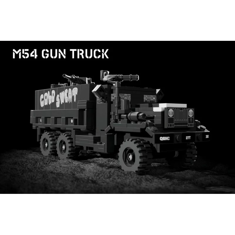 Loaded with mounted BrickArms and custom printed elements, the M54 Gun Truck kit is a long-awaited addition to the Brickmania Vietnam bricks lineup! This blacked-out and beastly looking build features a sturdy composition, with accurate detailing and lots of versatility. Printed elements include the “Cold Sweat” along each side, as well as front and rear bumper details, and a phenomenal front grill. Play features include one custom minifig driver, a variety of BrickArms, plenty of space for minifigs, opening cab doors, and rolling wheels. Also featured is a high-quality sticker sheet for additional gun truck names.