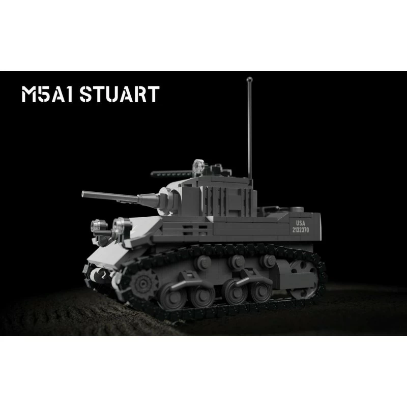 The Stuart line of American light tanks entered combat in 1942 as a part of the North African campaign. For the United States, light tanks were designed to work in conjunction with infantry to provide advanced scouting and close support. The M5A1 was updated over the original M3 Stuart. This version used two Cadillac engines instead of the aircraft engine on the previous model. A redesigned hull improved protection and created more space for its crew. The M5 Stuart still used its predecessor’s 37mm main gun along with three coaxial Browning M1919 .30 caliber machine guns. Though the main gun was underpowered when up against German tanks, in the Pacific the Stuart was an even match against Japanese armor.