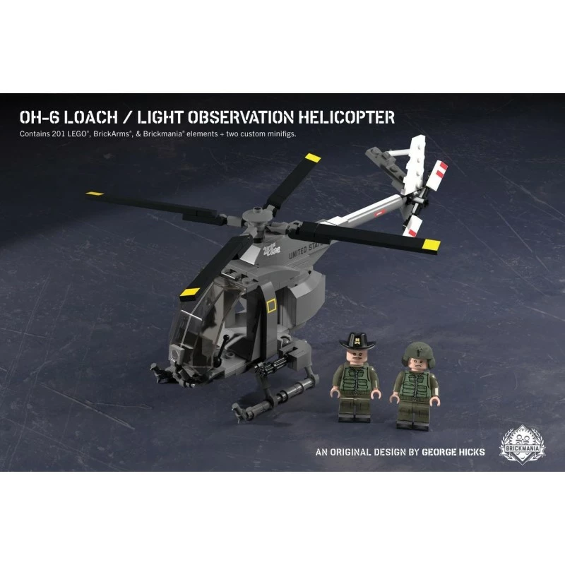 This highly swooshable kit features and pair of custom minifigs and a mounted BrickArms® minigun. Custom printed details include the canopy, control panel, rotor blades, rear boom, front intake, insignias, and more. There are no stickers featured on this build.