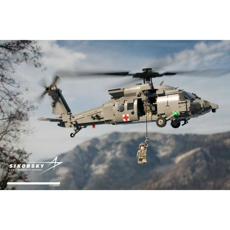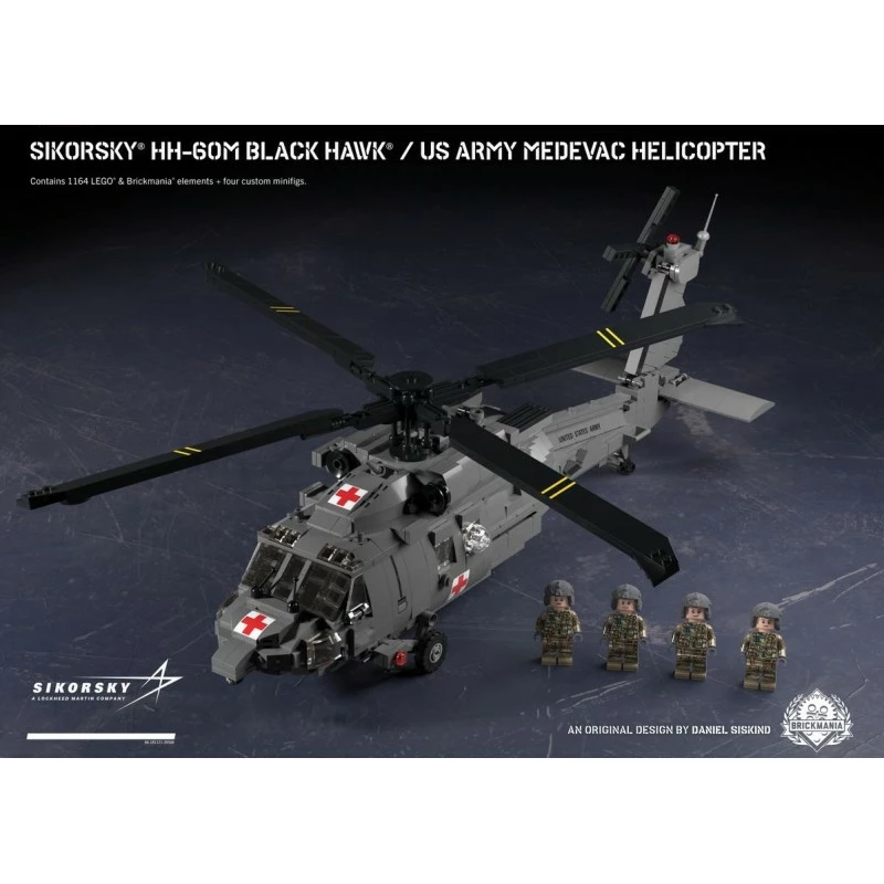 The epic Brickmania Black Hawk® kit lineup continues with yet another highly detailed model with no stickers! All details are custom printed and include Red Cross emblems, tail boom markings, door markings, chaff dispensers, rotor blades, cockpit/interior details, and much more. Also included is a crew of four custom minifigs. The kits play features include sliding doors, spinning rotors, opening pilot doors, brick-built stretchers, a rescue winch, and more. This build sets yet another standard in an already incredible lineup, so be sure to secure a copy!