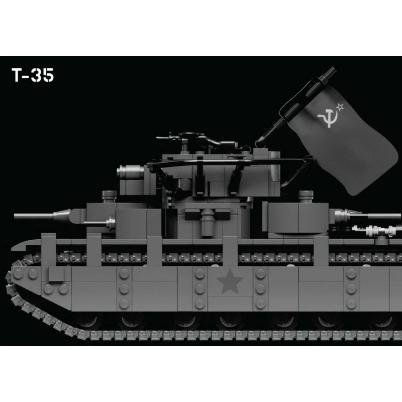 The legendary tank is now a legendary kit! Loaded with custom printing, play features, and a custom minifig, the T-35 is yet another in the ‘wonder weapon’ lineup that did see service. There are no stickers on this build, and there is a custom simulated fabric flag. After all, these land battleships need to be parade ready!