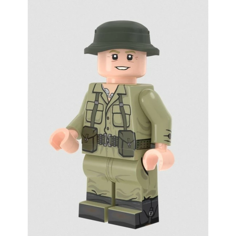 Play features include seats for both custom minifigs, a mounted BrickArms M60 MG, and a pair of the new BrickArms Reloaded Owen Guns. Printed details include the front grille, indicators, license plate, and more. The two custom minifigs included are also sporting a brand-new custom 3D printed giggle hat created in house by Brickmania.