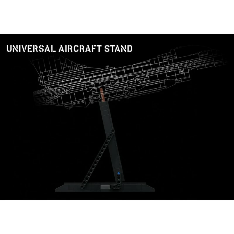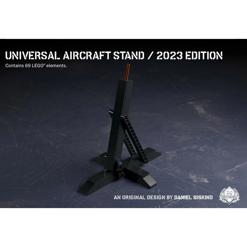 De stand-alone Universal Aircraft Stand – 2023 Edition is gearriveerd! Compatibel met bijgewerkte Brickmania-vliegtuigkits, is de universele vliegtuigstandaard nu beschikbaar als optionele upgrade. Nieuwe kits zonder standaard hebben nog steeds op maat gemaakte naamplaatjes die compatibel zijn met deze build.