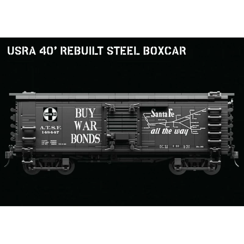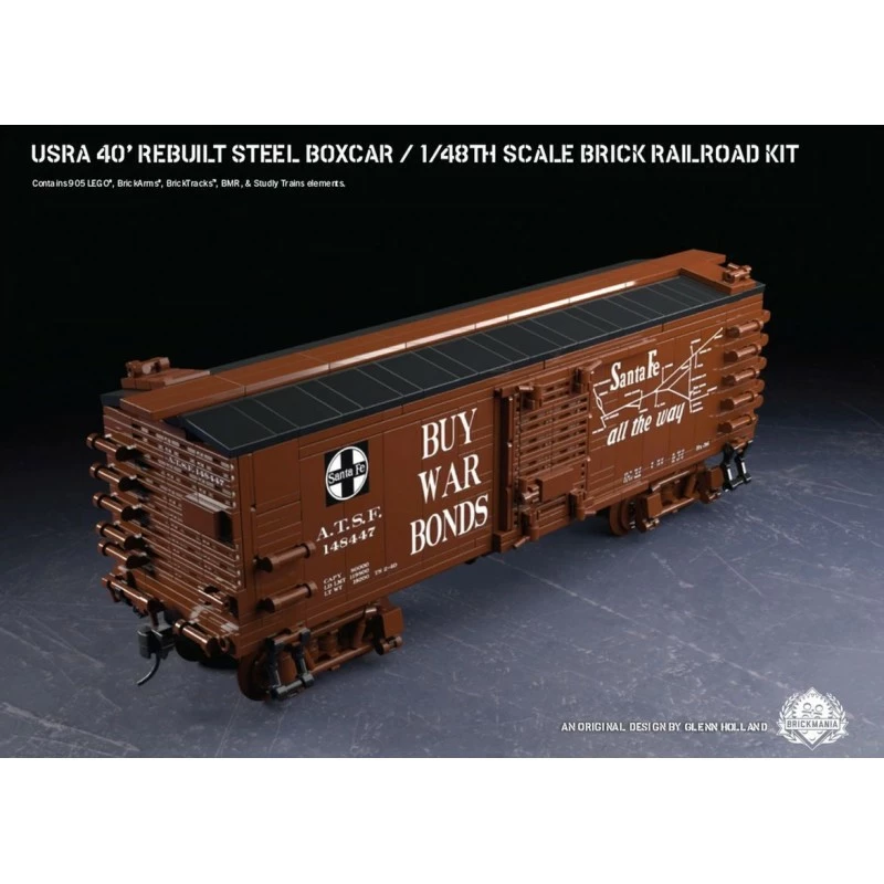 Een USRA 40 ’herbouwde stalen boxcar – 1 / 48e schaal Brick Railroad Kit ontworpen door BMR’s Glenn Holland en gestandaardiseerd door Brickmania’s Mary Wilson.